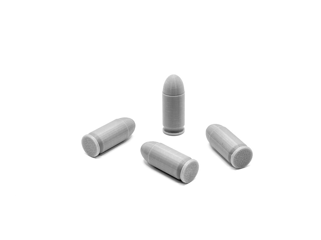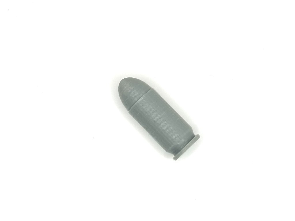 Model: .45 ACP Gun Bullet 1:1 Replica, autor 13Dawid_, licencováno pod CC-BY-SA 4.0. Upraveno a vytištěno Per Manus. Více na stránce Atribuce a licence